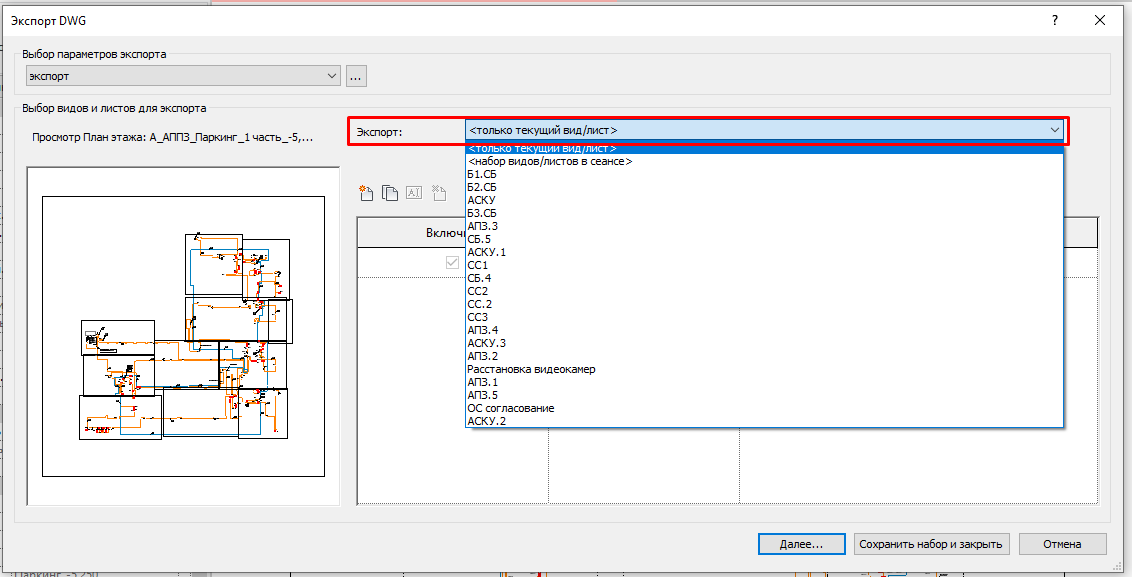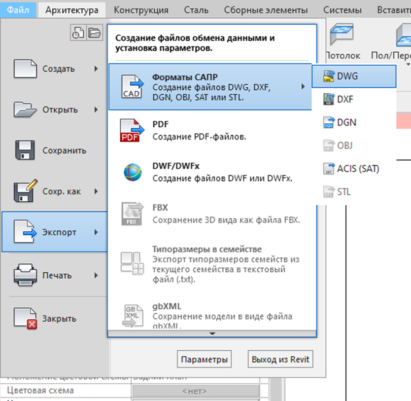 Рассмотрим выгрузку архитектуры в формате dwg из Ревита.