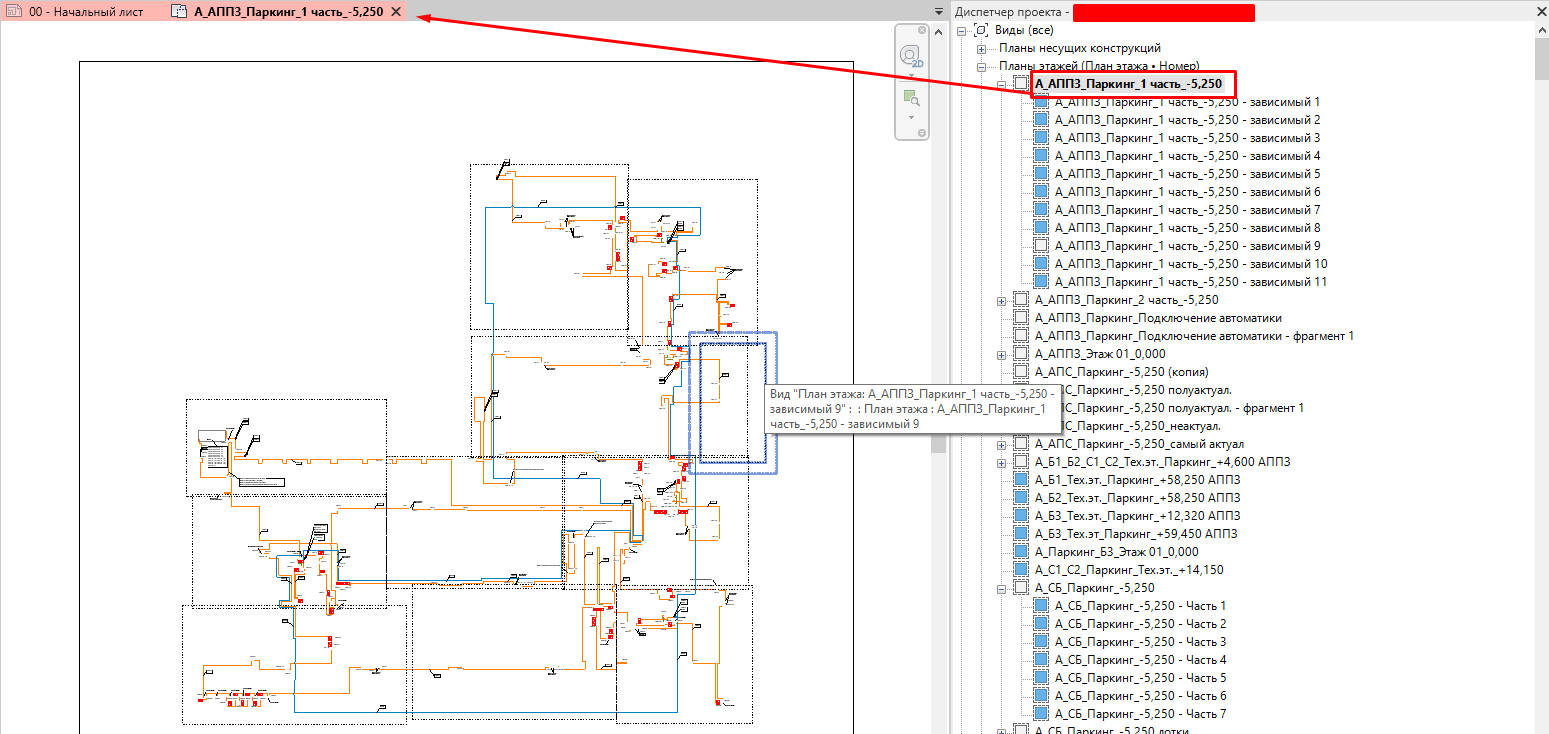 1. Открываем в Revit нужный нам план этажа из Диспетчера проекта